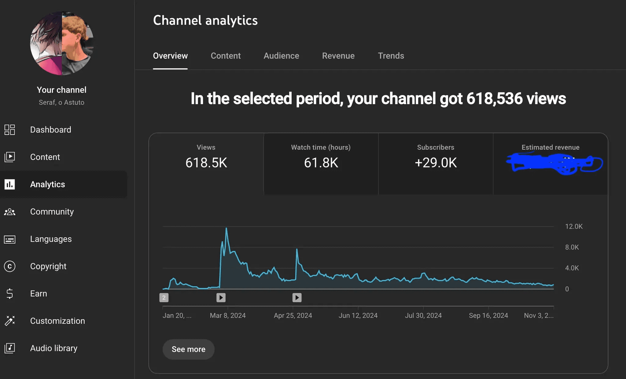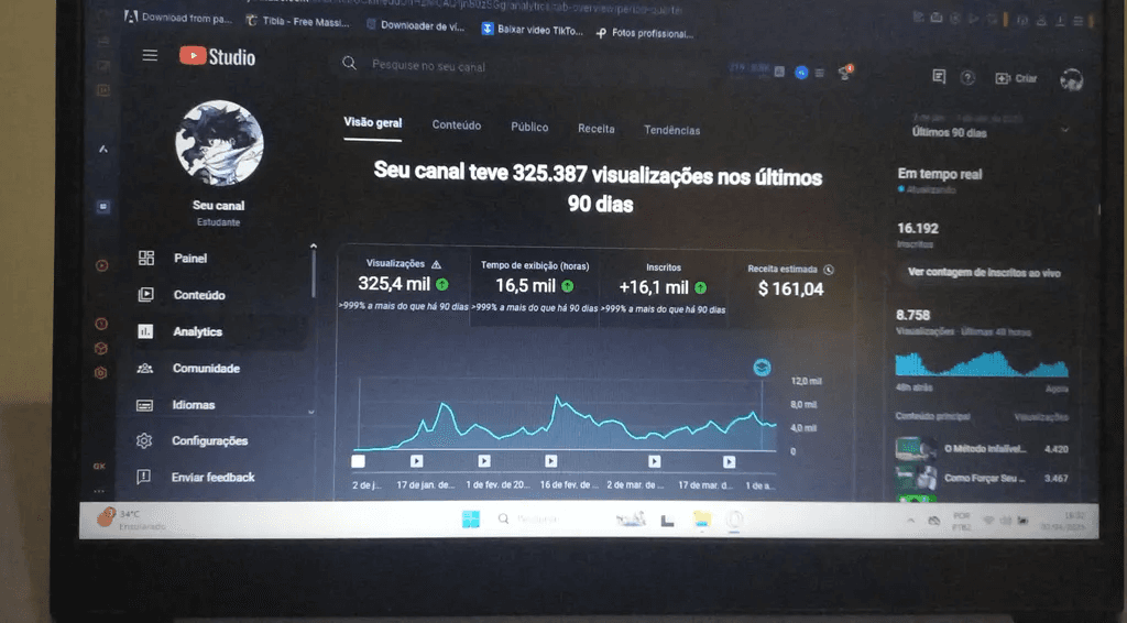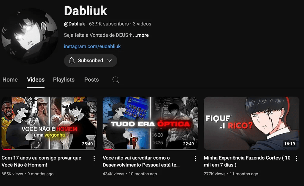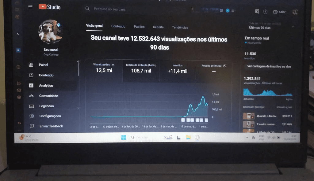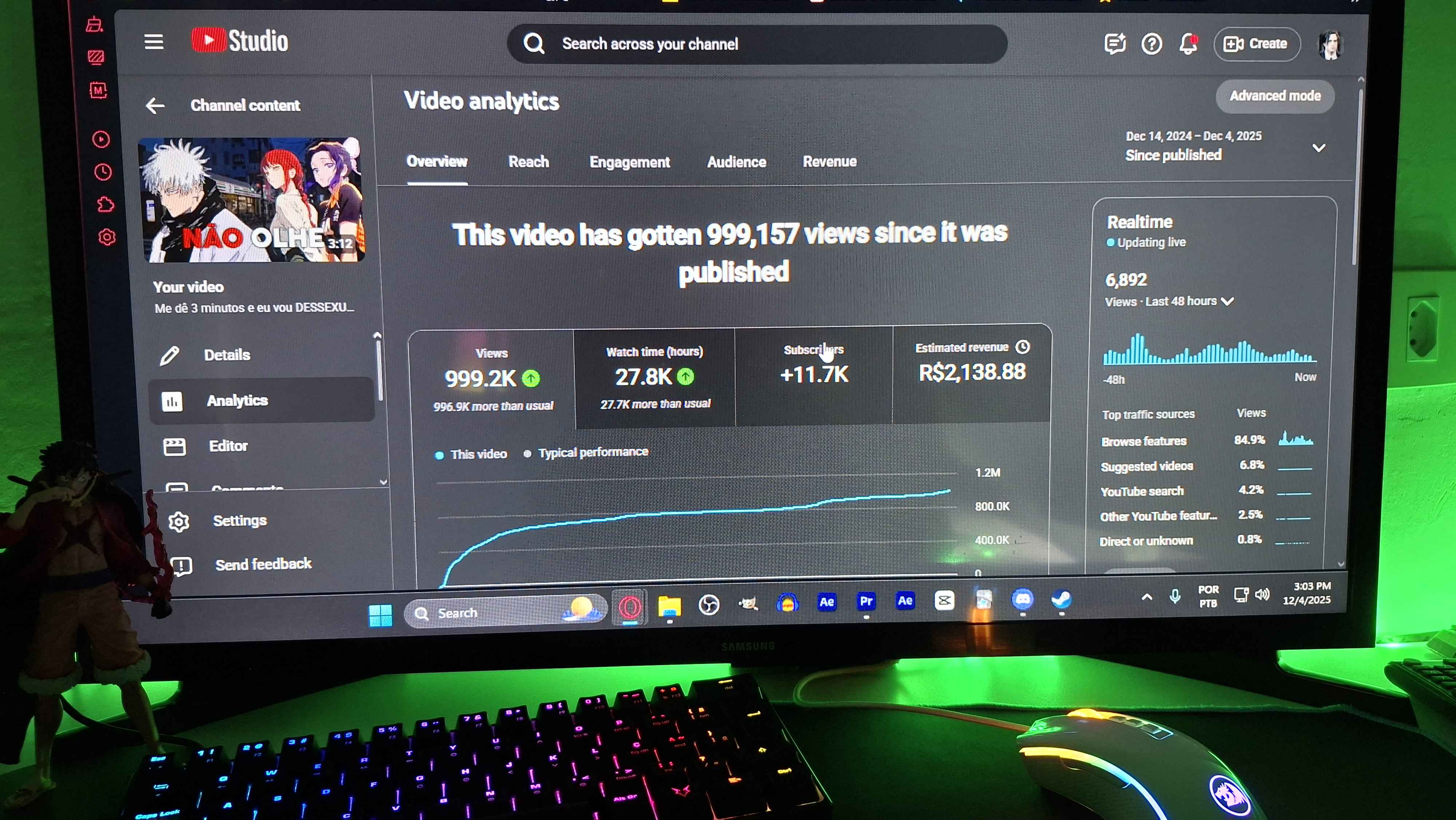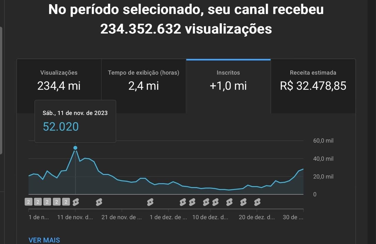 1 Milhão de Inscritos em 2 meses, chegando a ganhar 50 mil em um só dia.